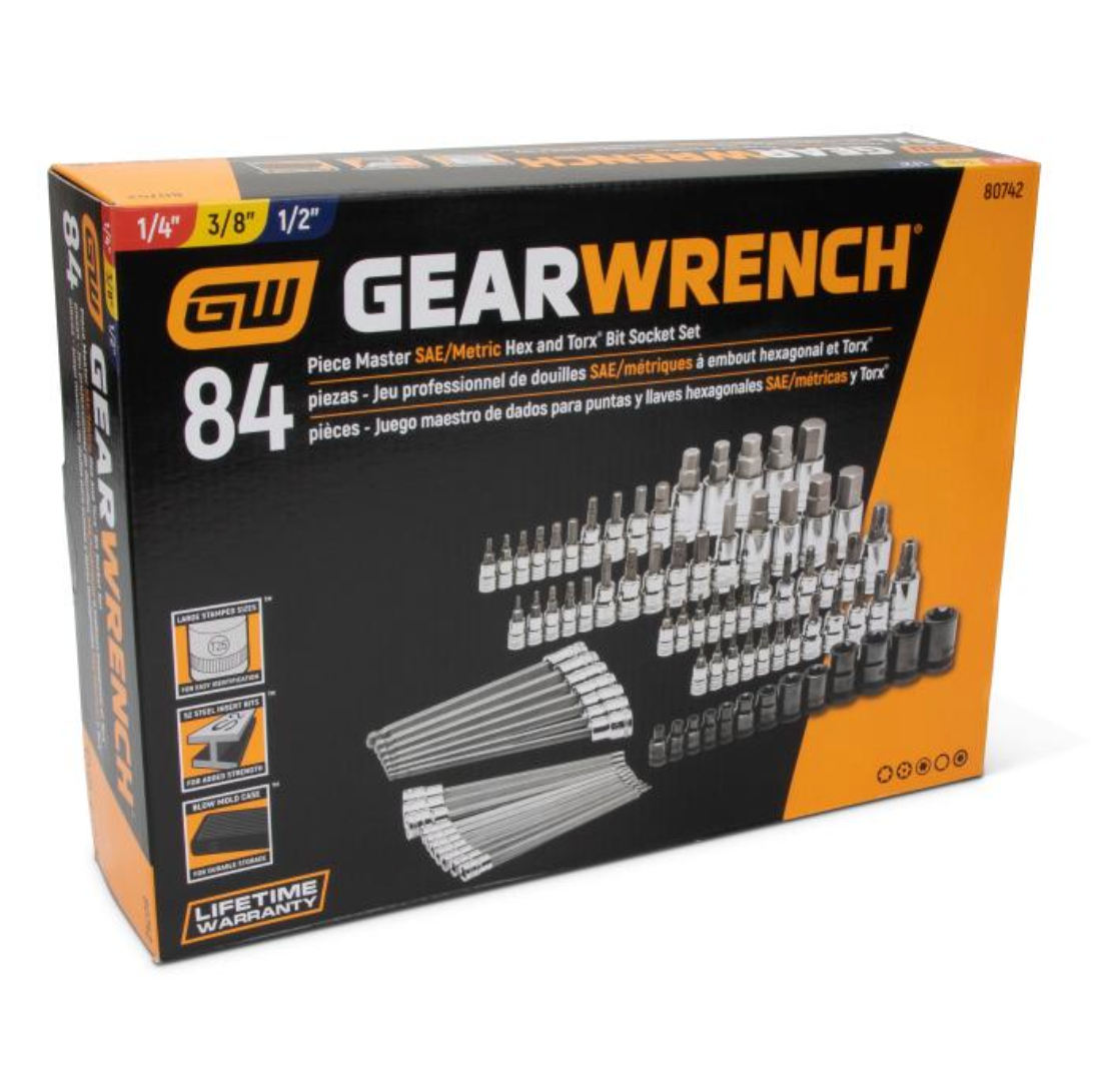 GearWrench 80742 - 84pc. 1/4", 3/8" & 1/2" Drive Hex/Ball End Hex/Tamper Proof Torx®/External Torx®/Torx® SAE/Metric Bit Set