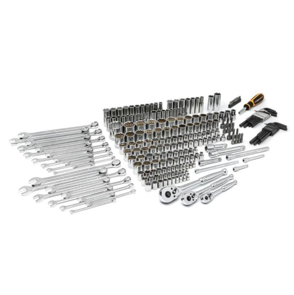 - Contains 12-point full polish long pattern combination wrenches and sockets