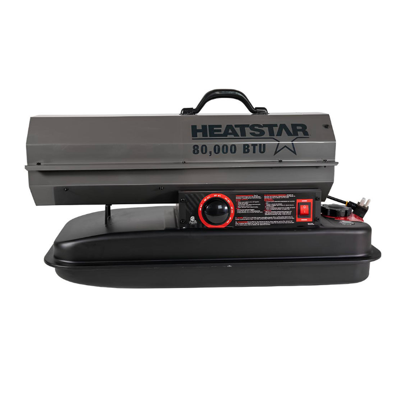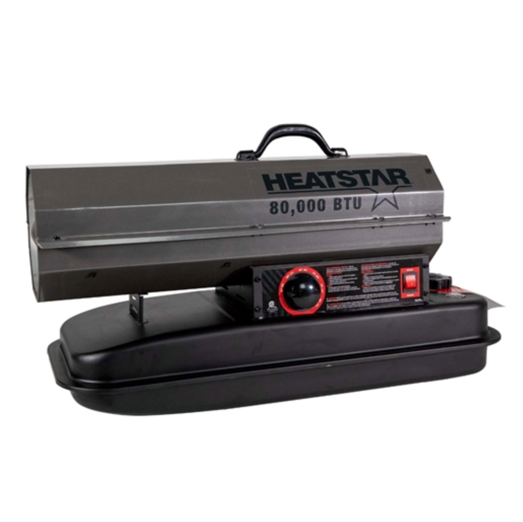 The Heatstar 80k BTU Forced-Air Kerosene Heater, HS80KT is a rugged unit ideal for workshops, construction sites, or any other area where dependability and durability are critical.