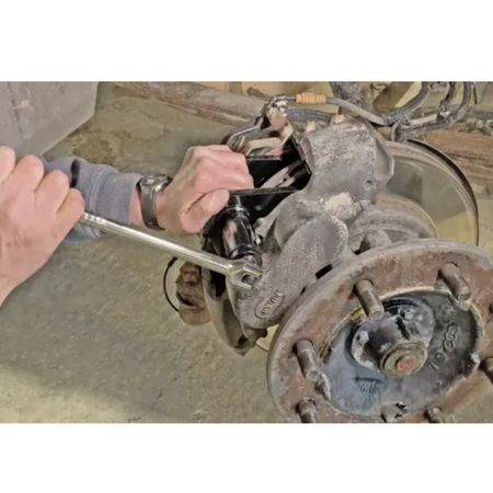 11-1/2" Long breaker bar for leverage. Also works on some dual piston brake calipers. Can be used while caliper is on the vehicle or hanging free. Range is 2" to 4".
