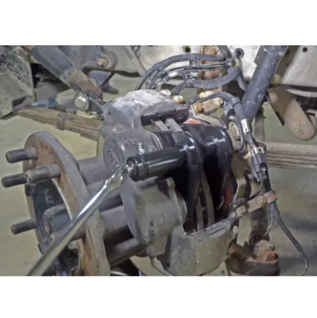 Simultaneously compresses pistons on quad piston hydraulic disc brakes found on medium-duty trucks and trailers, Including Walther EMC Dura-Force Hydraulic Disc Brake Systems.