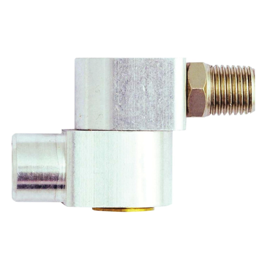 1/4" Air hose swivel connector with flow control. 360 degree swivel in two directions allows air hose to be connected to air tool helps reduce hose kinking and keeps the hose out of the way. These are not for use with percussion tools without the use of a hose whip or snubber hose. Allows for better flexibility and less hose kinking.