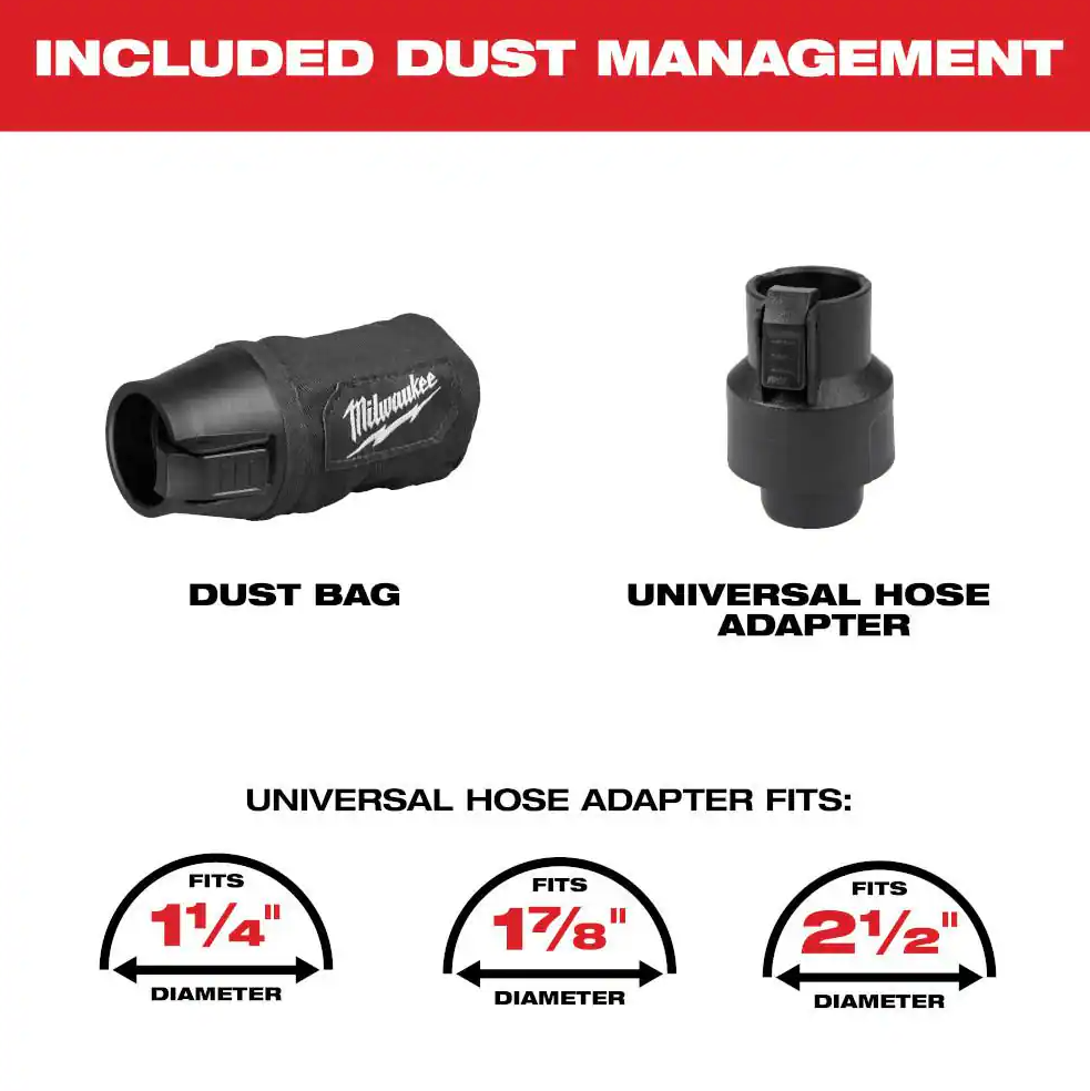 • Integrated Dust Control provides faster clean-up on the jobsite