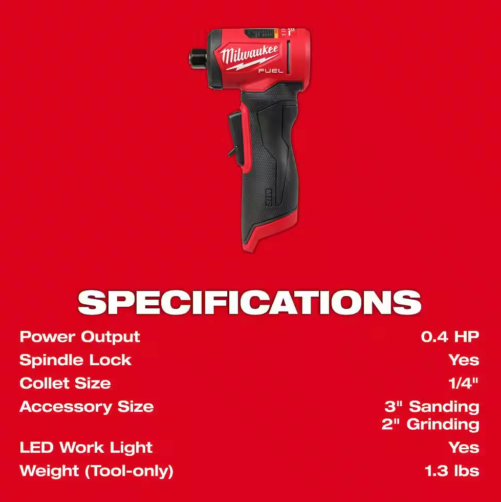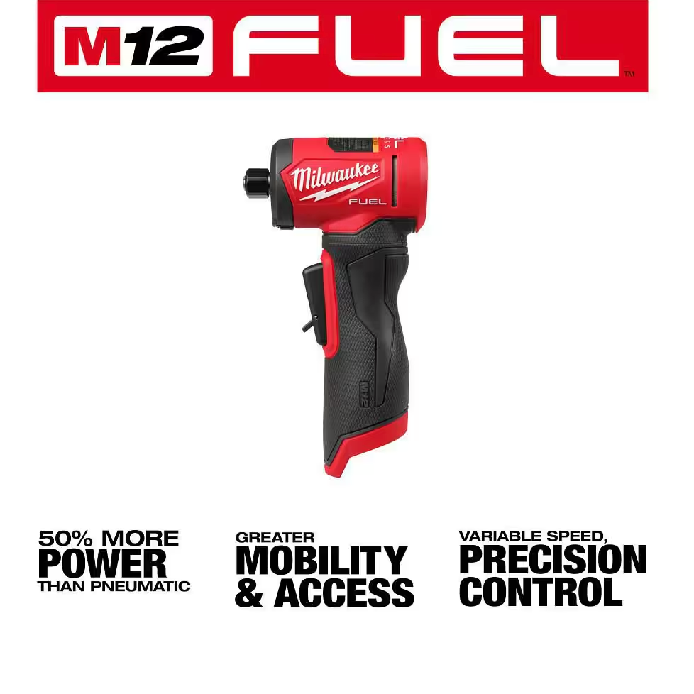 The MILWAUKEE M12 FUEL 1/4" Right Angle Die Grinder the latest cordless right angle die grinder that delivers the performance and size professional service mechanics demand. The die grinder delivers 50% more power than pneumatic competition and features our POWERSTATE Brushless Motor Technology with improved torque.
