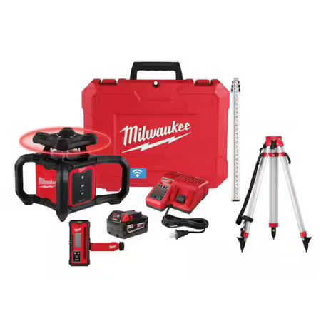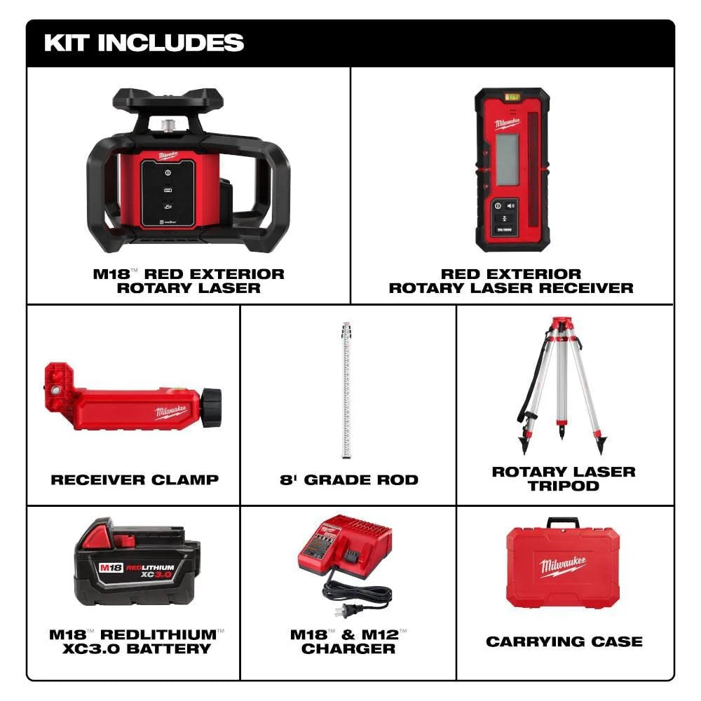 Milwaukee 3701-21T M18 Red Exterior Rotary Laser Level Kit w/ Receiver, Tripod, & Grade Rod