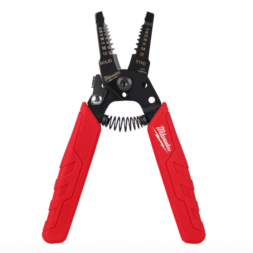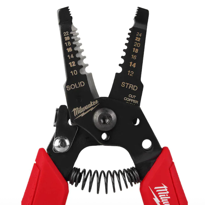 The MILWAUKEE® Compact Comfort Grip Wire Stripper and Cutter cleanly, and accurately strips 10-22 solid and 12-24 stranded AWG wires. The cutting blade's curved design allows you to cleanly cut through copper wires. This tool is spring loaded for easy opening and locks for convenient storage in your pocket, tool pouch, or bag. This compact wire stripper also features a small plier nose to grab wires in tight places and has slots for bending and looping wires. All MILWAUKEE® wire strippers are backed by their Limited Lifetime Warranty.