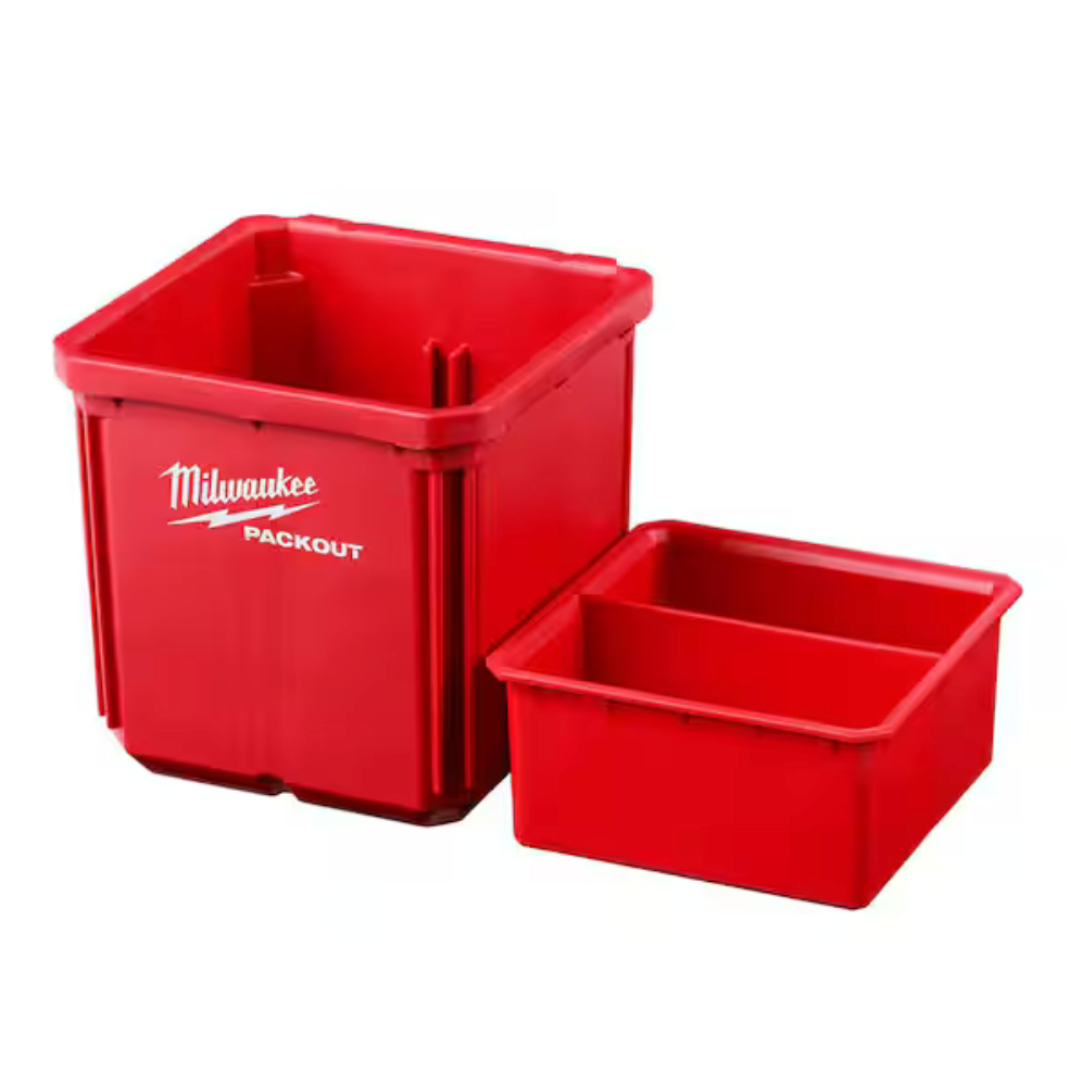 Our 2pk Bin Set for PACKOUT™ can be stored inside MILWAUKEE® PACKOUT™ Organizers and Compact Organizers (48-22-8430 & 48-22-8435) and hung on Mounting Plates. Constructed with an impact resistant body, these bins are built to withstand harsh jobsite conditions. Each bin features a removable interior organization tray to organize jobsite supplies. Our storage bins can be used to organize and store small items like fittings, fasteners, bits, and more. The Bin Set includes (2) Bins, (2) Interior Organization Trays, and (2) Removable Dividers. MILWAUKEE® PACKOUT™ is the industry's most versatile and durable modular storage system.
