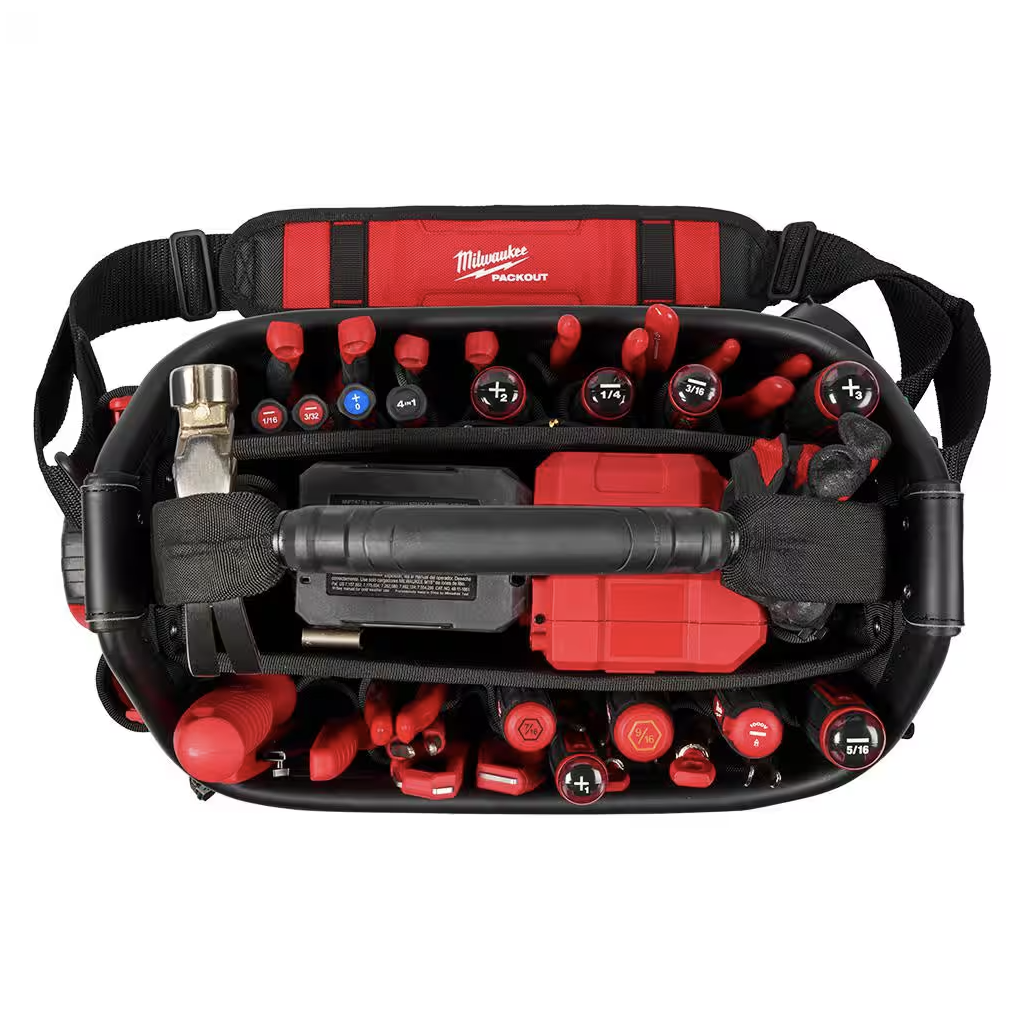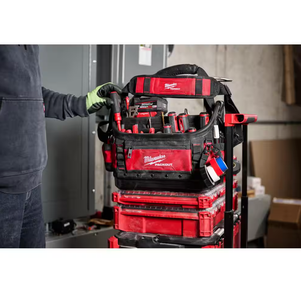 The PACKOUT™ 15” Structured Tote constructed with tear-resistant layered 680D & 1800D ballistic material for durability, a reinforced structure that holds its shape over time. The impact-resistant molded base connects with other MILWAUKEE® PACKOUT™ system components via integrated locking cleats. Our PACKOUT™ Modular Storage System allows you to customize and build your own tool storage system to easily transport and organize your tools and accessories.