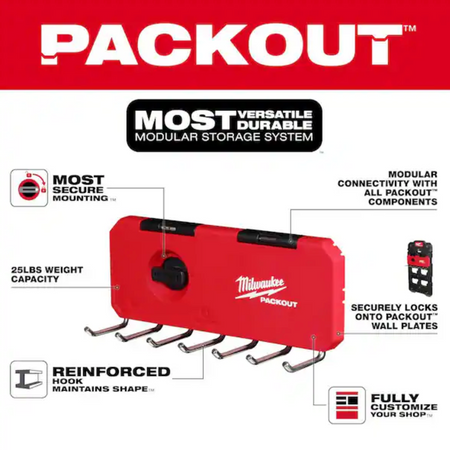 Our PACKOUT™ 7-Hook Rack delivers the most secure mounting when paired with PACKOUT™ Wall Plates, strongly holding the PACKOUT™ solution mounted to the wall.