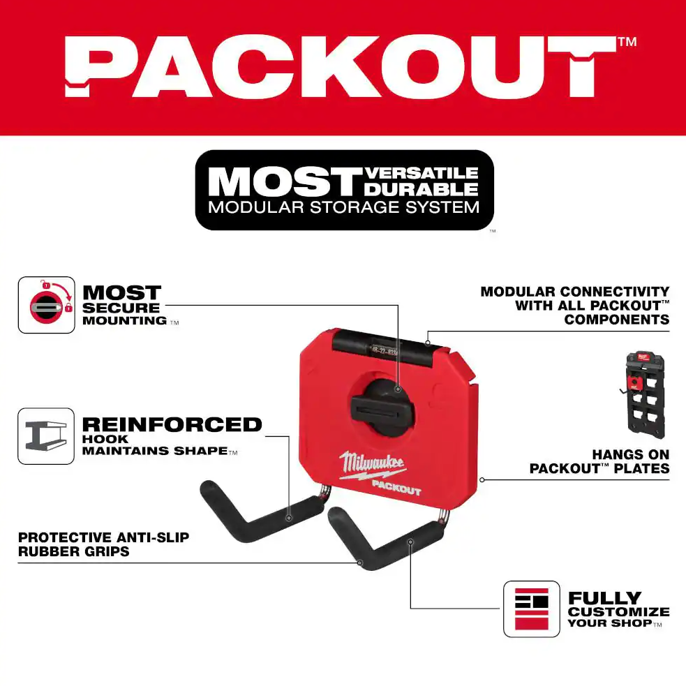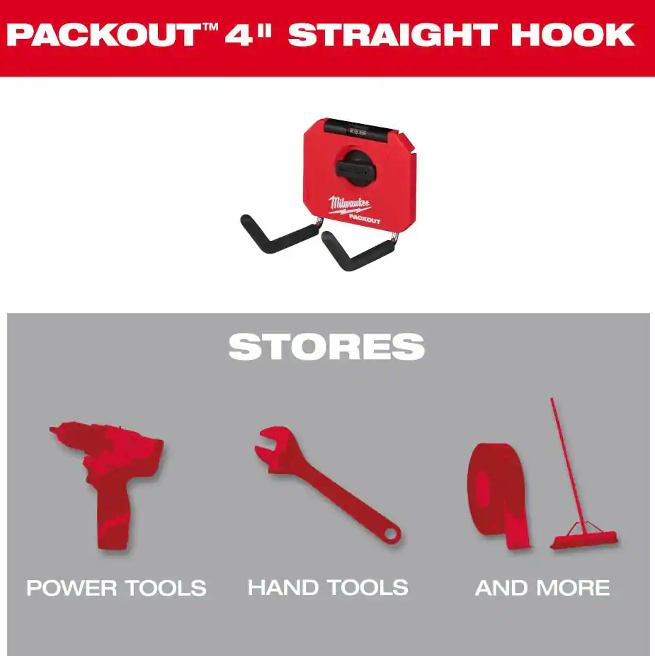 The PACKOUT 4 in. Straight Hook features an innovative locking mechanism that provides the most secure mounting in the shop and garage.