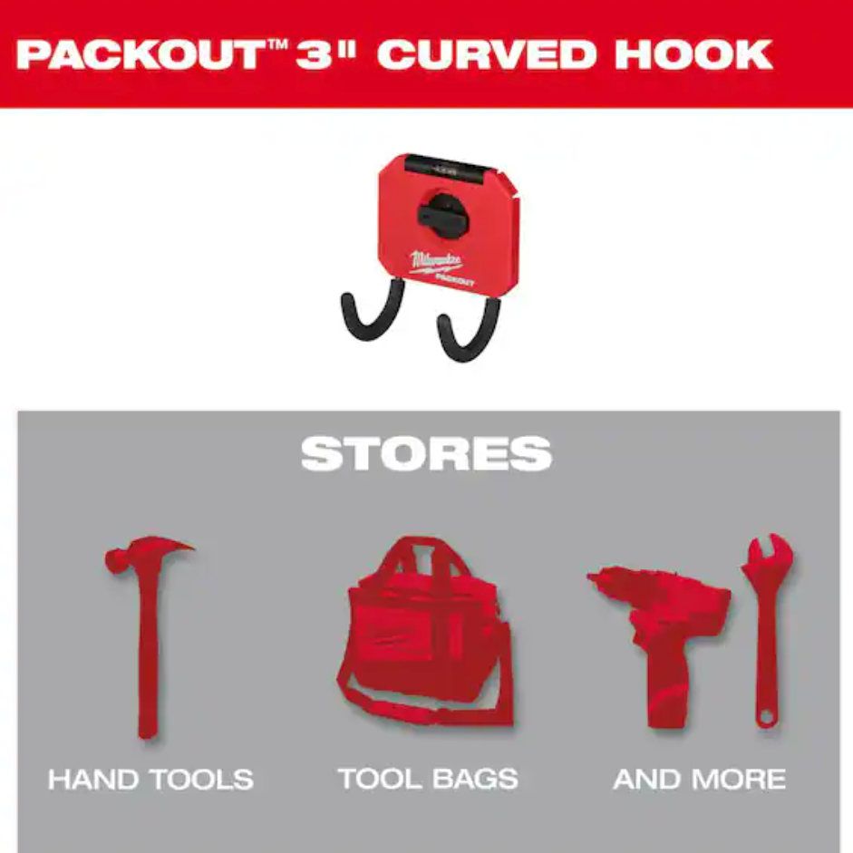 Our PACKOUT™ 3" Curved Hook delivers the most secure mounting when paired with PACKOUT™ Wall Plates, strongly holding the PACKOUT™ solution mounted to the wall.