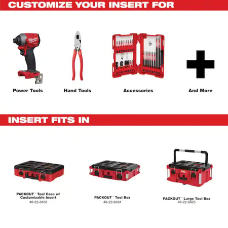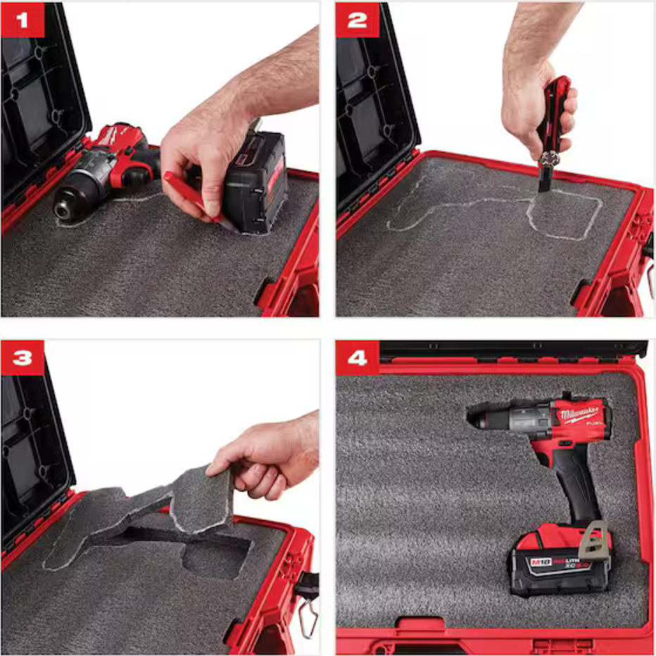 MILWAUKEE® Customizable Foam allows users to fully customize their storage cutting out custom slots to securely store and protect tools. This versatile insert fits in all PACKOUT™ tool boxes and tool cases (48-22-8424, 48-22-8425, 48-22-8450).