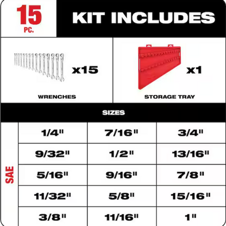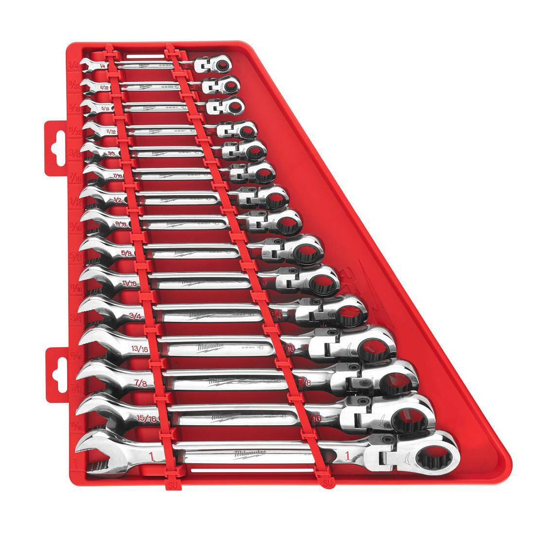 Milwaukee 48-22-9413 SAE Flex Head Ratcheting Combination Wrench Set, 15pc