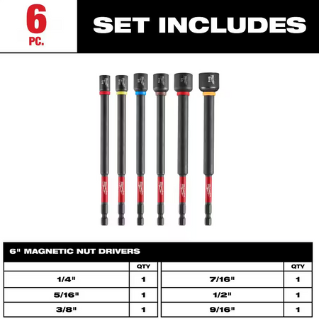 Milwaukee 49-66-4567 SHOCKWAVE Impact Duty™ 6" Magnetic Nut Driver Set, 6pc